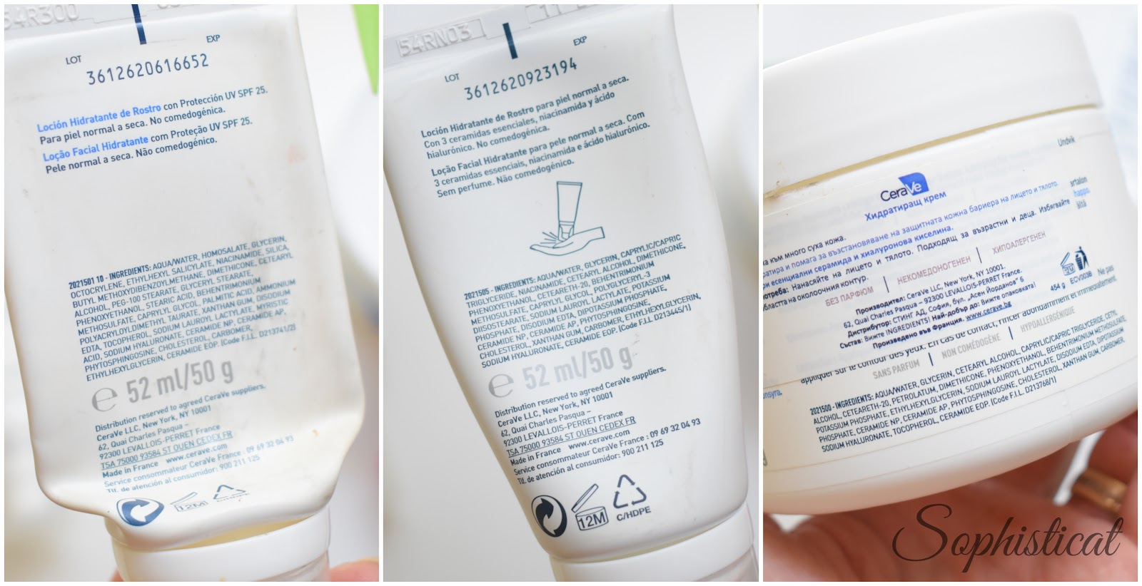 În ultimele 12 luni au existat și încă există în rutina mea personală 3 produse CeraVe ce îndeplinesc cu succes atât rolul de hidratare, cât și cel de protecția solară. Vă rog să luați aminte că deși ele sunt recomandate tenului normal/uscat, totuși se adaptează la perfecție nevoilor tenului meu mixt/deshidratat.